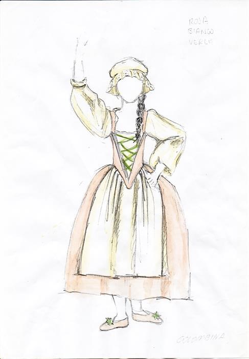Bozzetto di Margerita Re, aiuto scenografo e costumista, realizzato per lo spettacolo "La famiglia dell'antiquario" di Carlo Goldoni