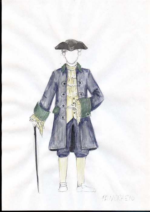 Bozzetto di Margerita Re, aiuto scenografo e costumista, realizzato per lo spettacolo "La famiglia dell'antiquario" di Carlo Goldoni