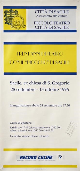 mostra storico-documentaria con materiale d'archivio della Compagnia e degli attori ideazione e organizzazione Piccolo Teatro Città di Sacile Sacile (PN), ex chiesa S. Gregorio - 28 settembre-13 ottobre 1996